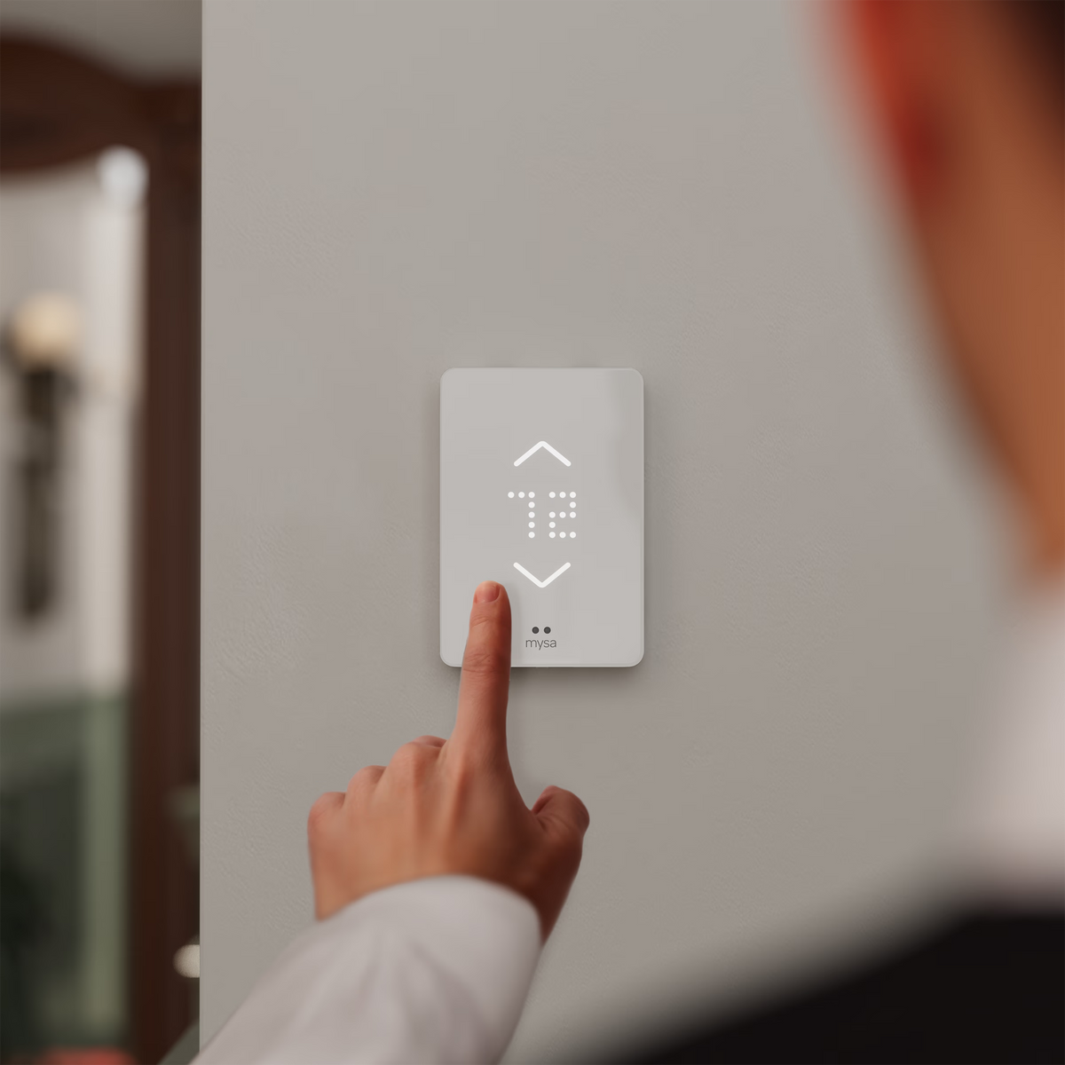 Mysa displays the room temperature, and the touch buttons allow you to adjust it